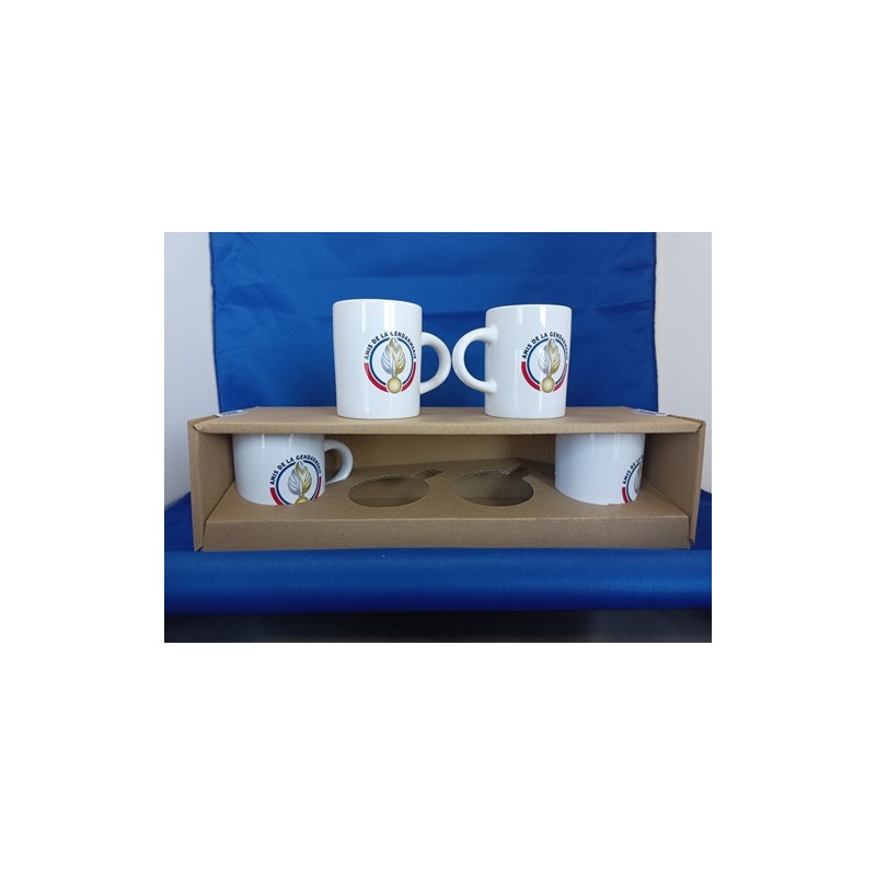 Set de 4 tasses Expresso mini, en porcelaine , contenance 80ml, finition brillante logo Couleur Amis gendarmerie recto verso