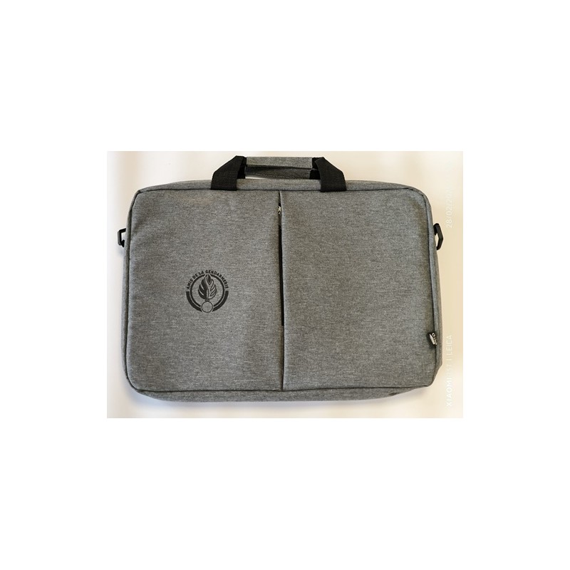 Sacoche ordinateur CASTELL; passant pour trolley au dos, grande poche frontale zippée matelassée, compartiment porte ordinateur 17', bandoulière, marquage logo amis Gendarmerie